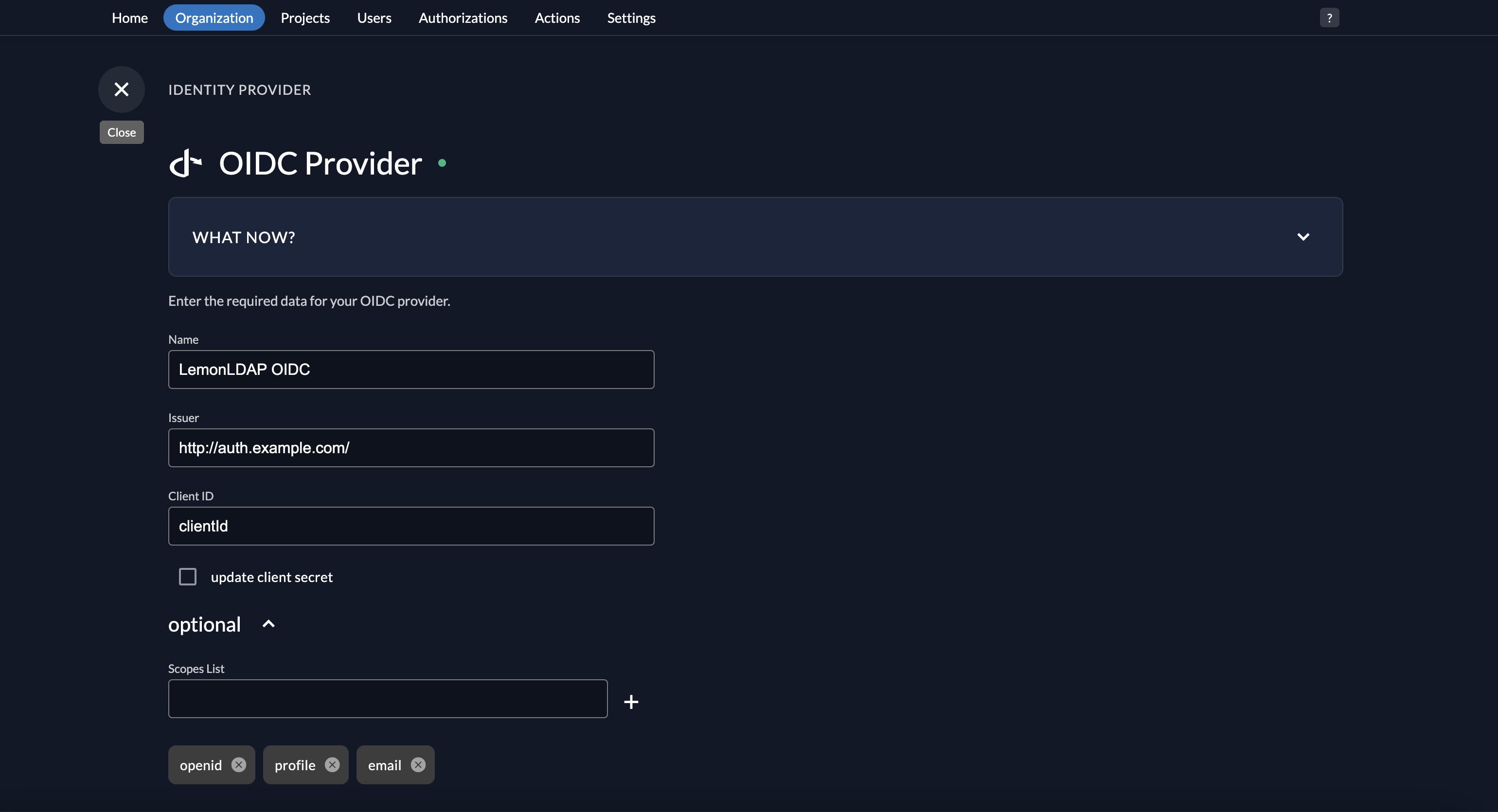 Settings > Identity Providers > Generic OIDC