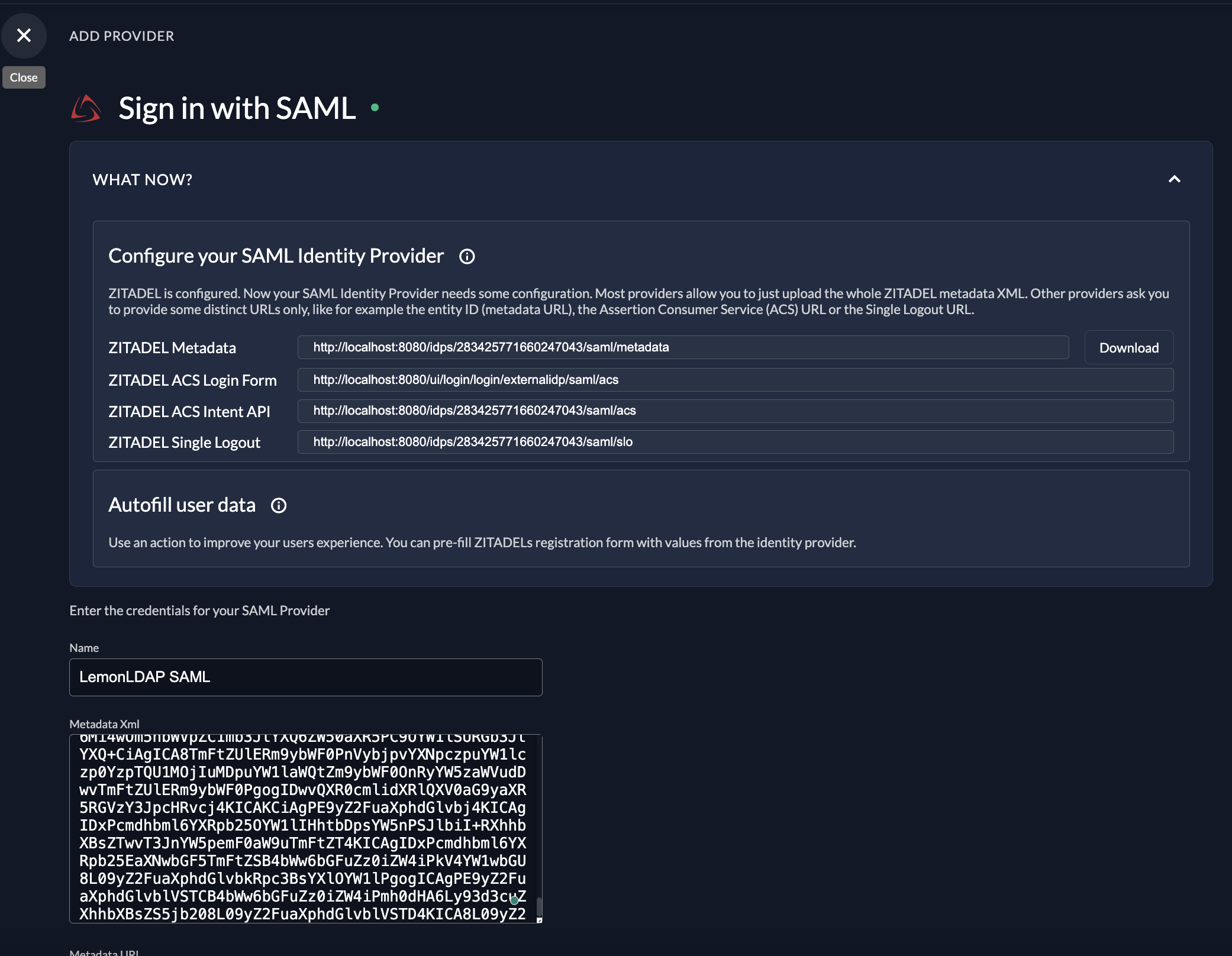 Download ZITADEL metadata